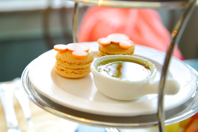 第三層是米奇鬆餅、米奇杏仁馬卡龍、抹茶焦糖布丁