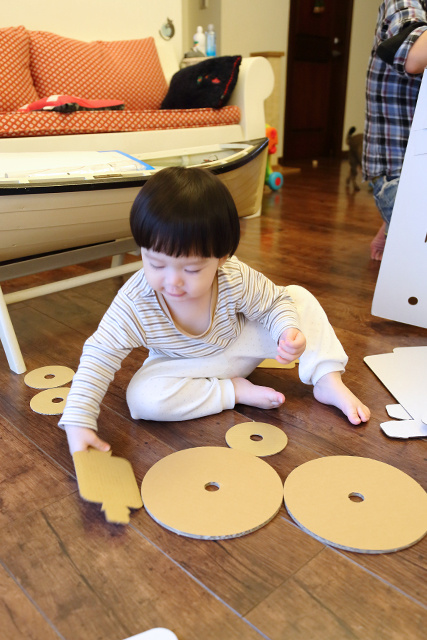 嵐嵐目前這個階段很喜歡排東西,看到大小輪子整齊的排成一排了嗎
