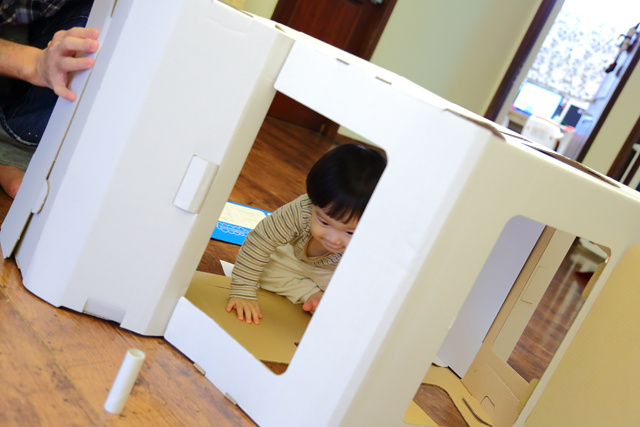 畢竟是瓦楞紙做的玩具,強度要經得起小惡魔們的考驗比較難