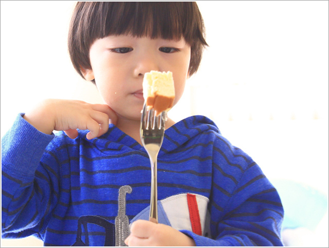 嵐嵐呢平常就愛海綿蛋糕,拍照時不知在拗什麼