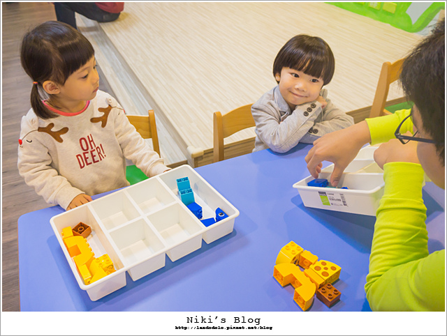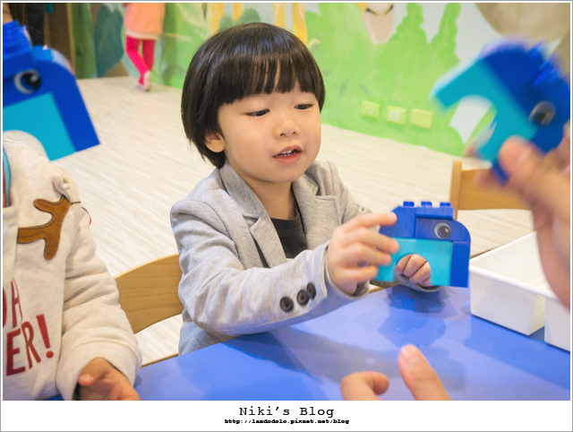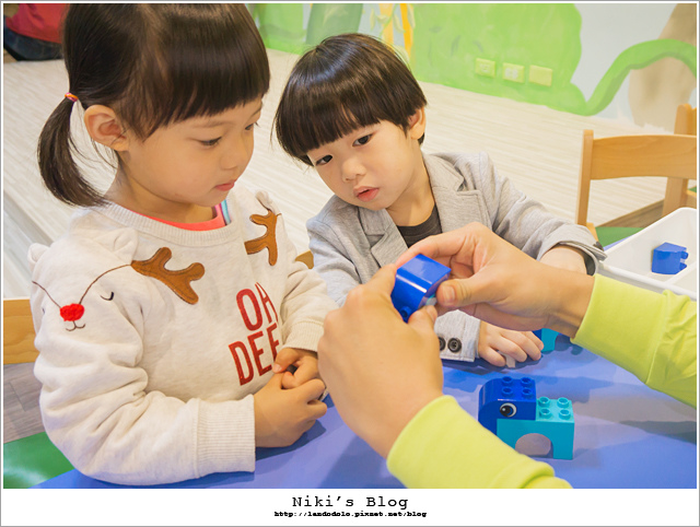 玩積木嘛多讓小朋友自己試試看,不是拿過來幫小孩裝~趕著繼續下一個步驟
