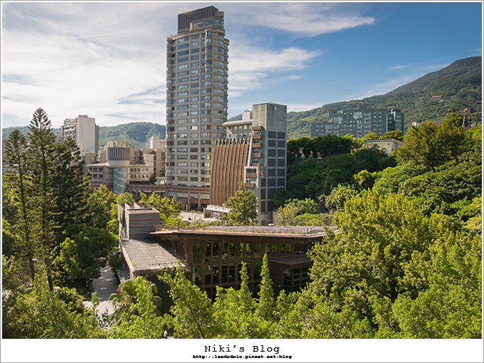 俯瞰圖書館與北投公園被大遍大遍綠意包圍著