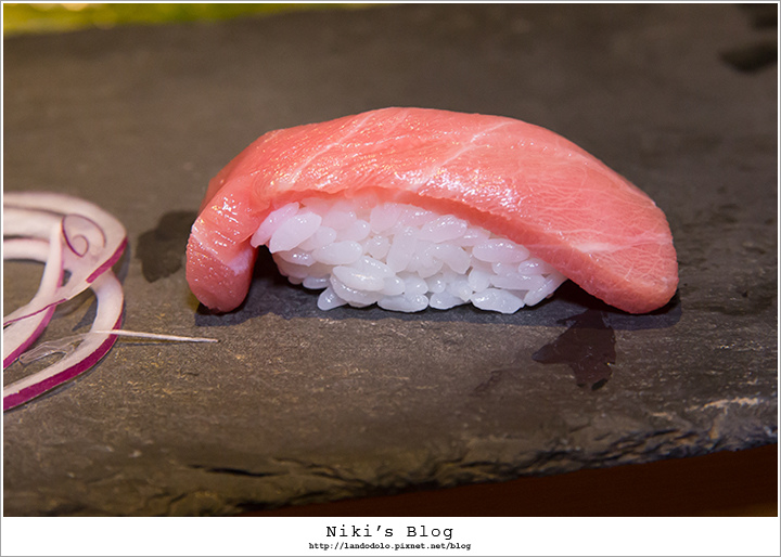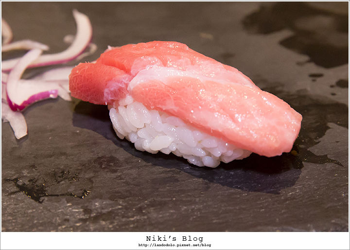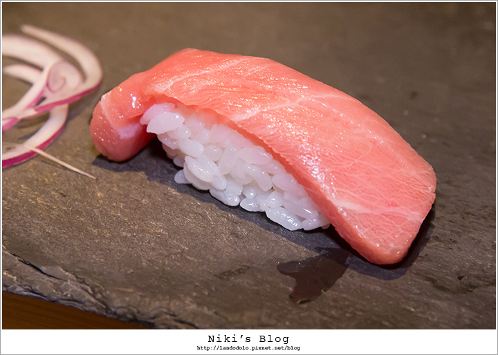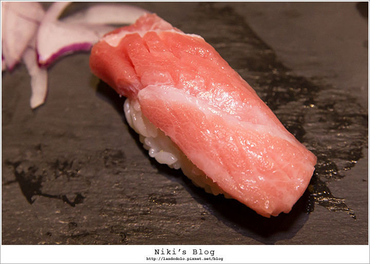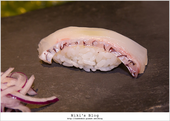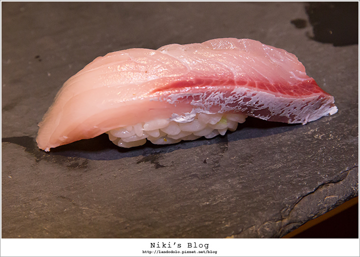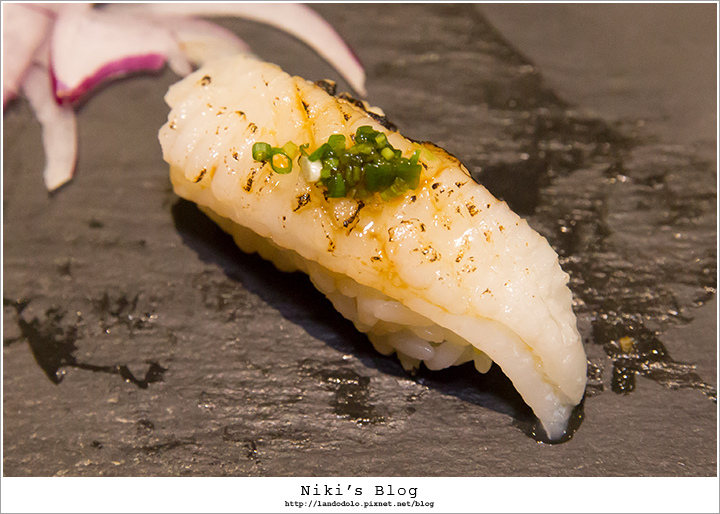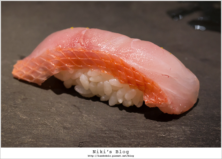 金目鯛顏色迷人~肉質Q嫩相當棒,握壽司有淡淡柚香