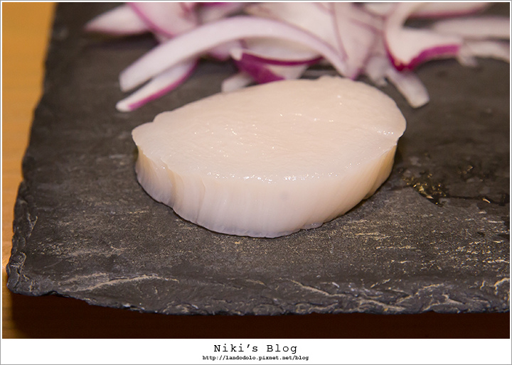 這回料理長又奢侈的用生食等級干貝,微微炙燒到五分熟