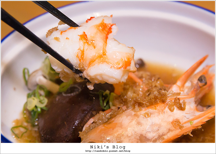 明蝦肉質又甜又彈牙!兩種菇與醬汁也棒棒