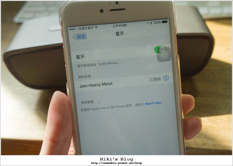 充飽電之後,開啟喇叭電源與手機配對,連線成功就這樣而已