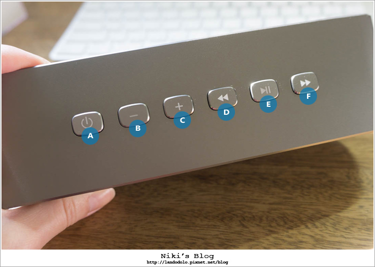 喇叭上方共六顆按鈕: