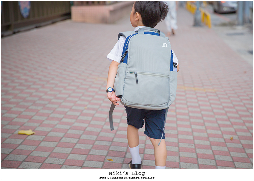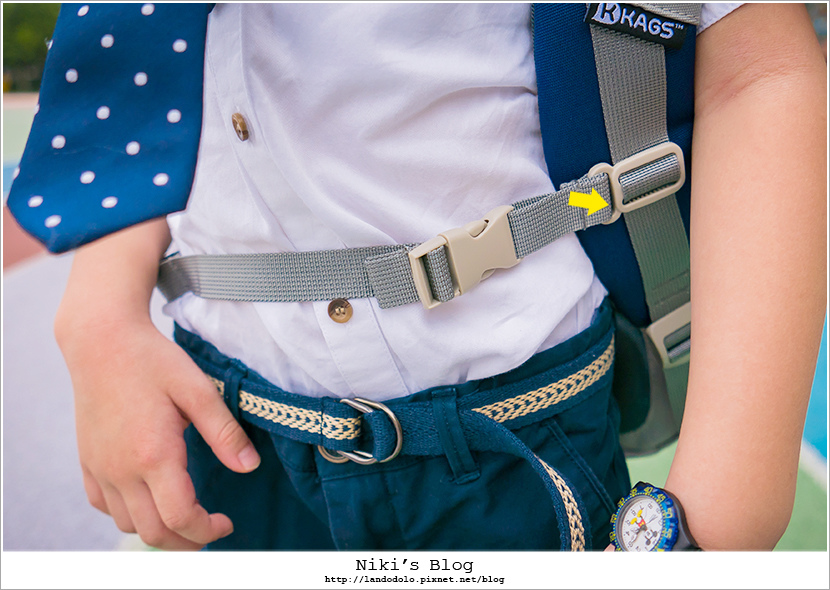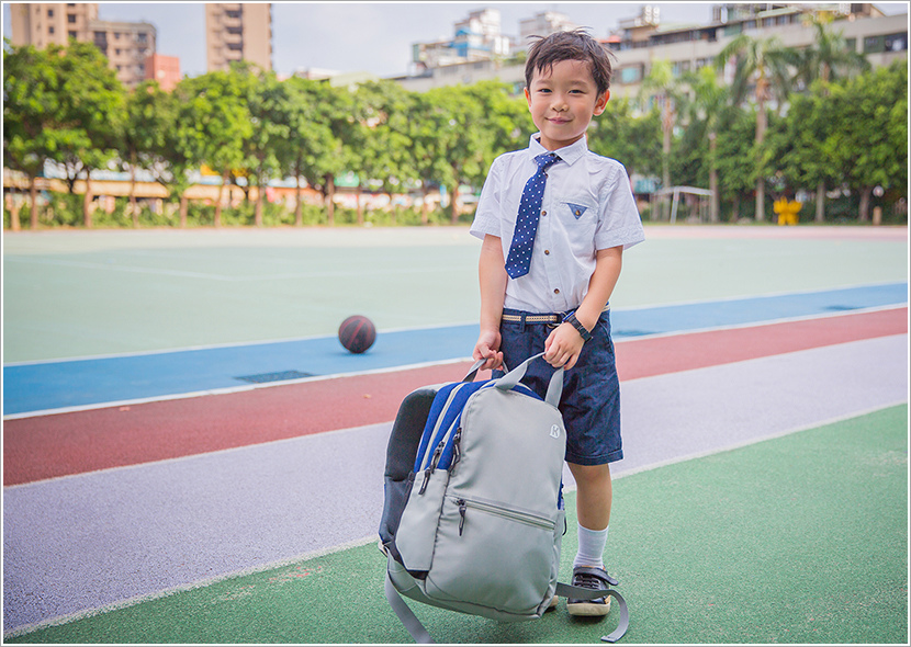 幼稚園的書包沒有胸扣,他自己會用多出來的肩帶綁在胸前(笑翻)