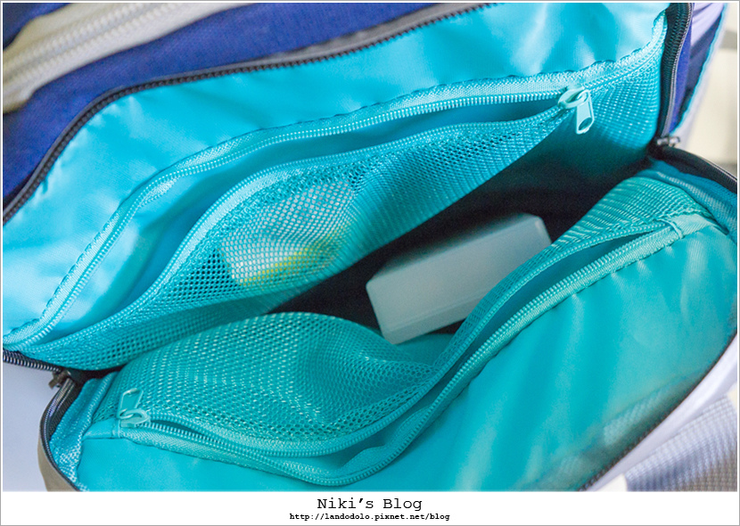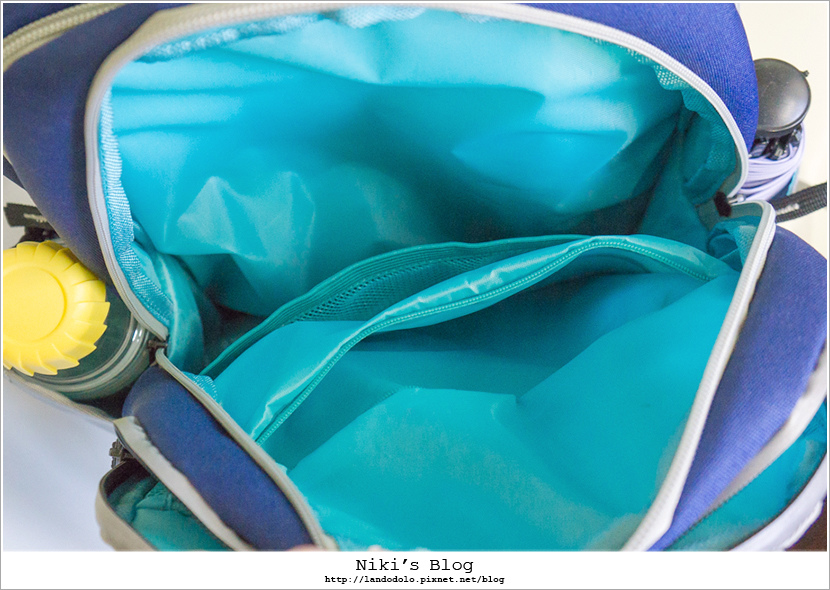 書包內共有三層主收納,最外面這一層有兩格拉鍊網袋