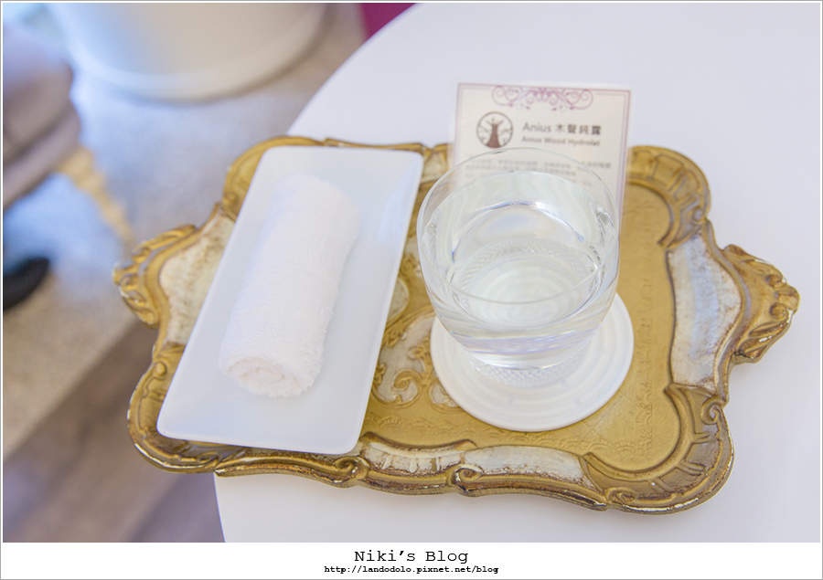 坐下來芳療師會給我們一杯純露和熱熱的擦手毛巾