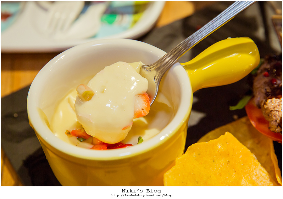 還有一小盅熱起司可以沾洋芋片慢慢享受(撒花)
