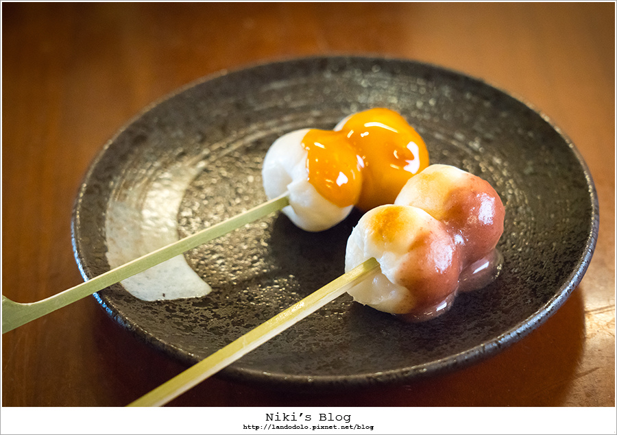 烤過串團子有醬油和紅豆兩種口味沾醬自己DIY,兩顆一串呷促咪^^