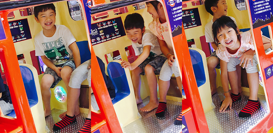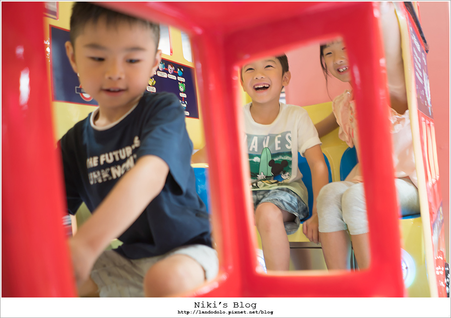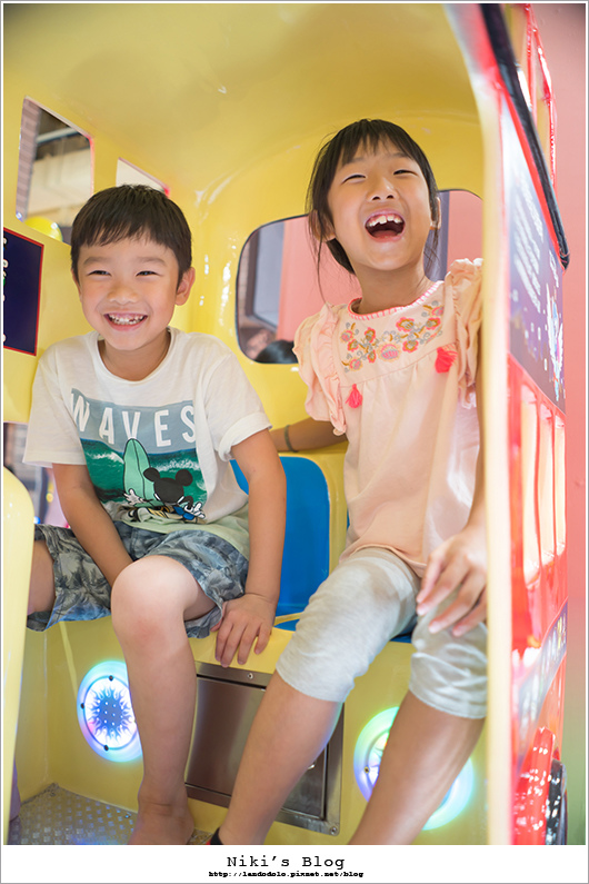 小小朋友可以坐上雙層巴士,享受開車的快感XD