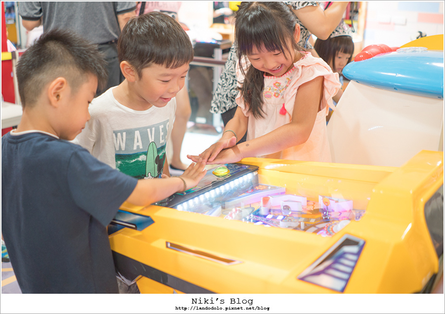 最吸引他們的是超炫彈珠檯,三人合力玩到代幣用光光為止