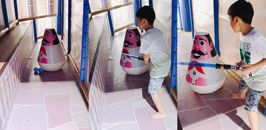 下方體能區像秘密通道,會遇到不倒翁和拳擊沙包