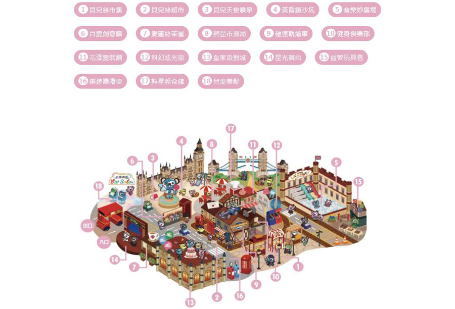 18個遊樂區,延續了貝兒絲夢幻精緻的風格