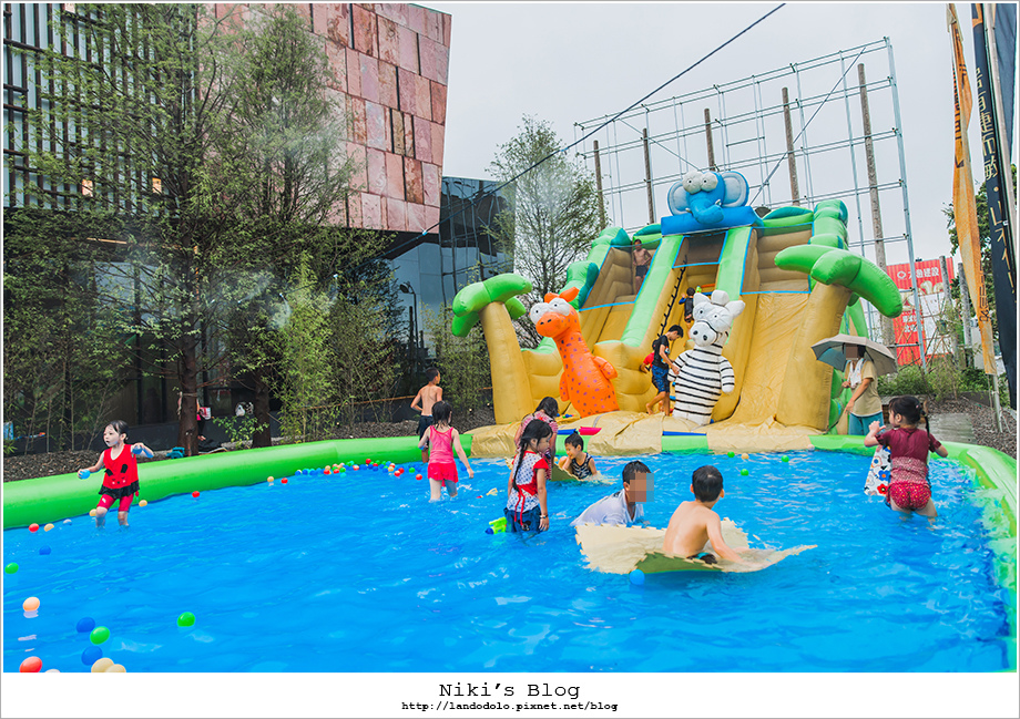 戶外有氣墊遊戲水樂園、釣魚池、胖卡餐車聚會
