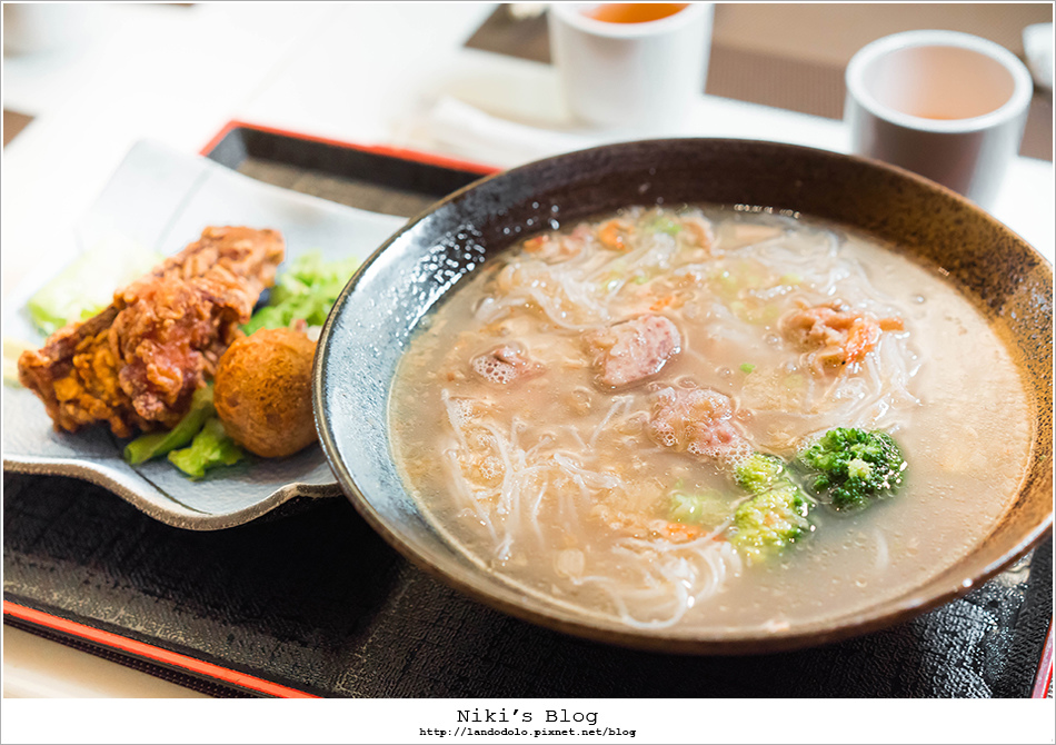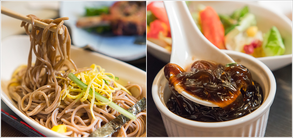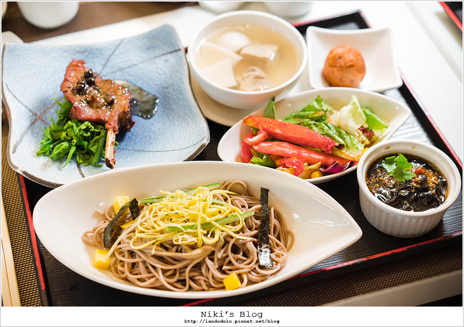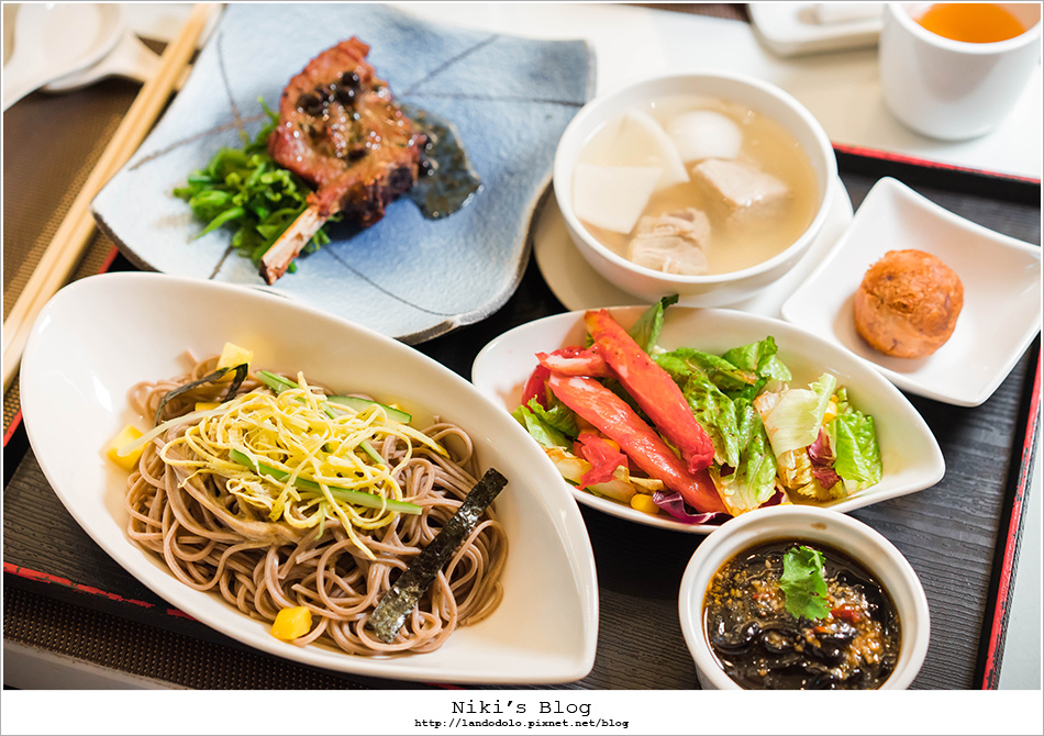 燉排骨湯以椰子燉湯,涼麵為配合新北投冷麵季使用蕎麥麵,熱量低不怕胖(笑)