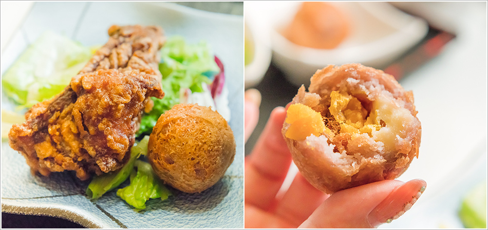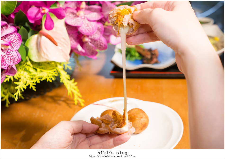 爽脆外皮包裹著綿密芋泥、牽絲起司、鹹鴨蛋,加上肉鬆,嘖嘖~那火花