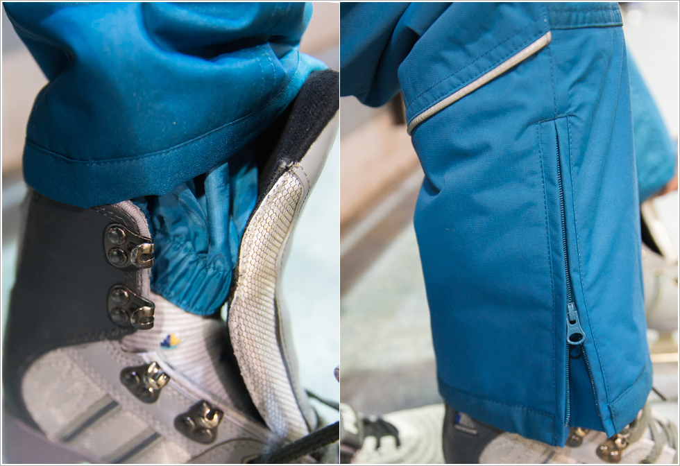 臀部、膝蓋處、褲管下擺有拼接牛津布,增強雪褲耐磨度