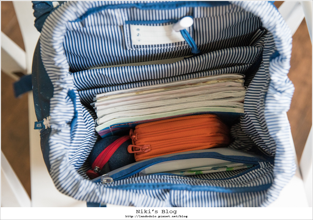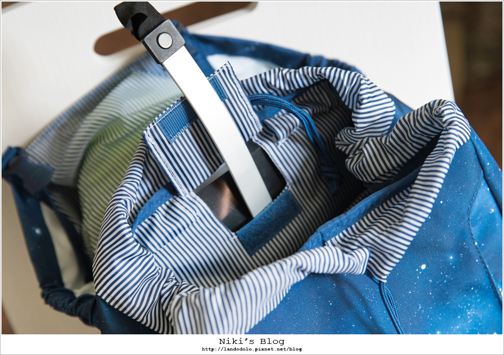抽繩開口設計作用:更集中書包內部重量,減輕、穩定背負