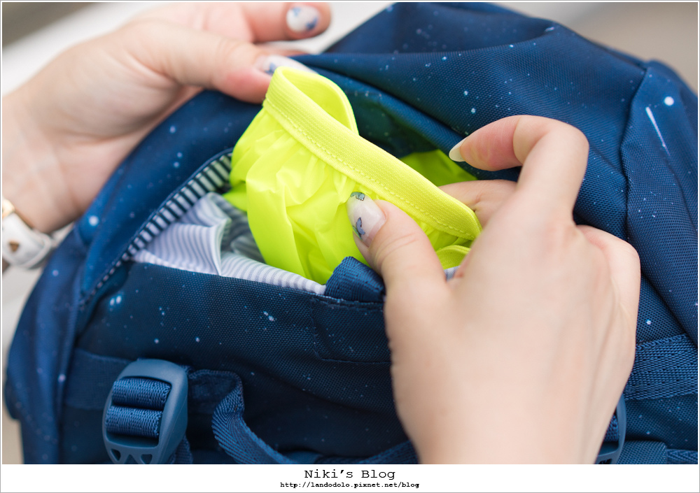 書包雨衣(專用防雨套)放在上蓋裡頭