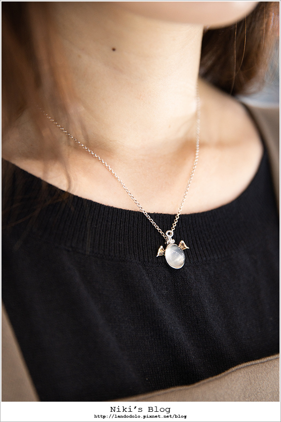 以單顆月光石為主的天使之淚項鍊,穿低領口或高領毛衣都蠻適合的